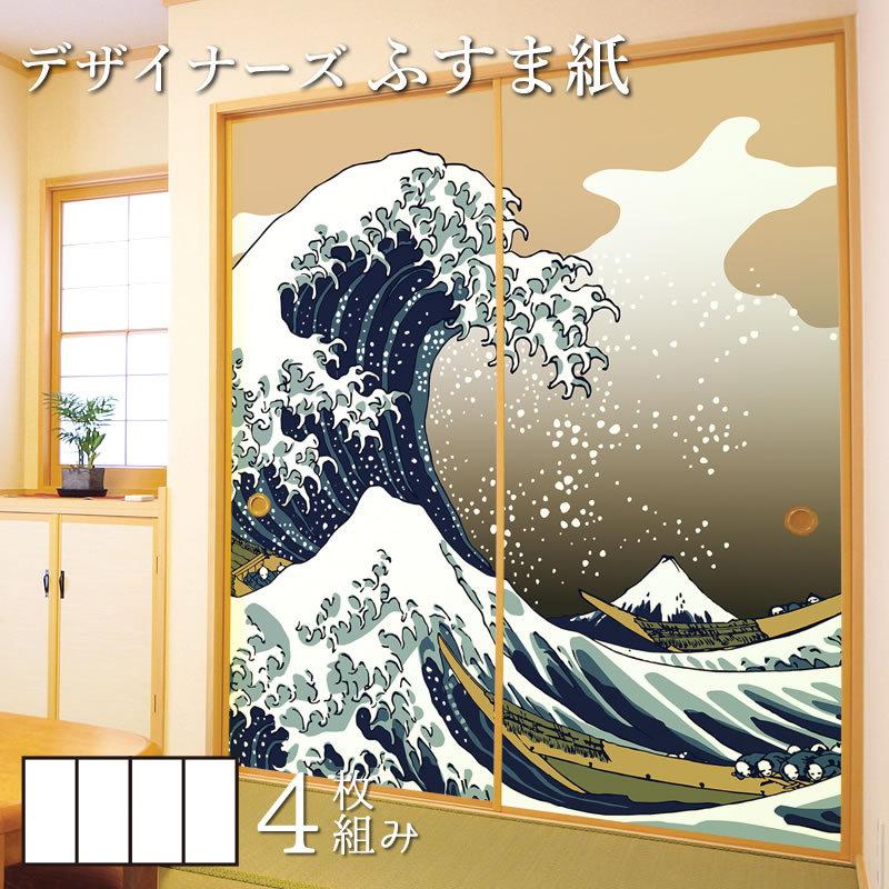 最安 襖紙 襖 壁紙 ふすま紙 和モダン サイズ デザイン 4枚組 縦250cm 浮世絵 神奈川沖浪裏 激安単価で Www Aproniaperu Com