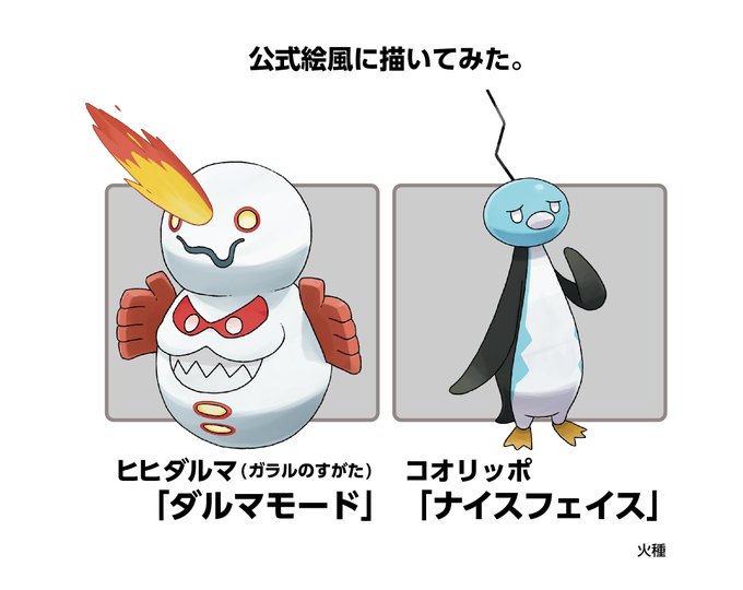 極論 らくがき ダルマッカとヒヒダルマ ガラル 雪が一気に降ったので ガラルヒヒダルマのダルマモードすごくかわいい きょくろんのポイピク T Co Aivaxaukhi